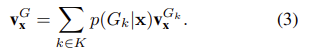 그룹 인식 표현(Instance-based Representation). GroupFace는 인스턴스 기반 표현뿐만 아니라 새로운 그룹 인식 표현을 사용하여 임베딩 기능을 풍부하게 한다. 각 그룹 인식 표현 벡터는 각 해당 그룹에 대해 완전히 연결된 계층을 배포하여 추출한다. GroupFace의 임베딩 기능(G, 그림 2의 최종 표현)은 인스턴스 기반 표현 A와 가중치 요약 그룹 인식 표현 E를 집계하여 얻는다. GroupFace는 다음과 같이 농축된 최종 표현 G를 사용하여 ID를 예측한다.
