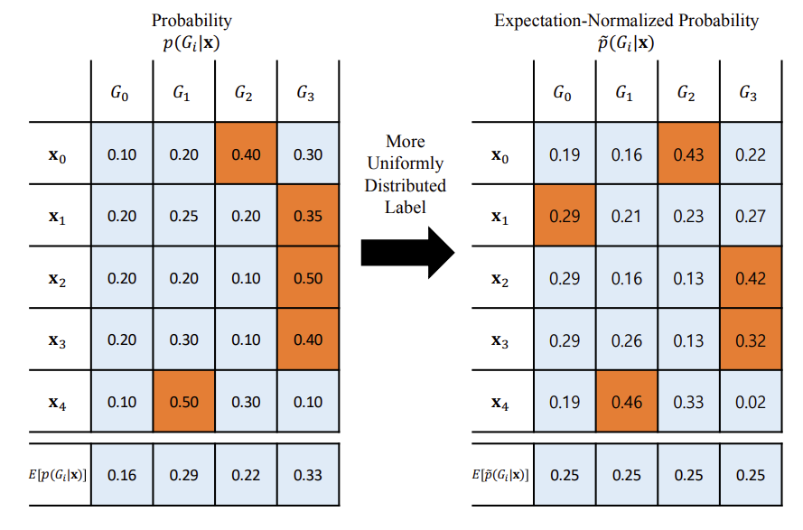 자체 분산 레이블링(Self-distributed Labeling). 이전 확률로 조절된 수정된 확률을 활용하여 균일하게 분포된 그룹 레이블을 심층적으로 생성하는 효율적인 레이블링 방법을 소개한다. 우리는 K 그룹 간의 표본 수의 균형을 맞추기 위해 기대 정규화된 확률 p² 를 정의한다.