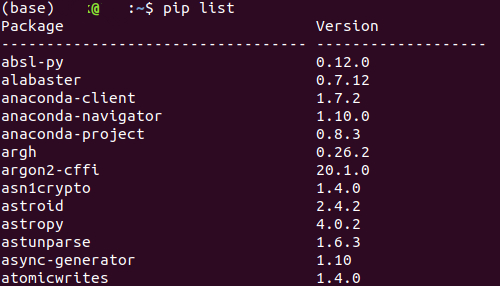 $pip list --local |