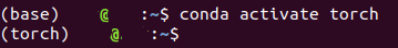 그다음 base에 들어있는 가상 환경을 그대로 옮길 가상환경 torch로 변경해준다.
