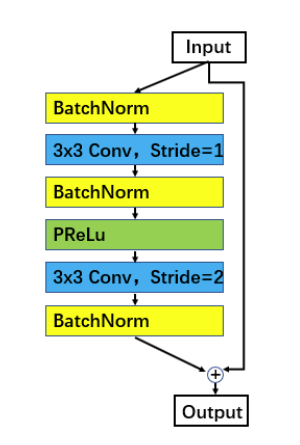 원래 ResNet 유닛 외에도 얼굴 인식 모델의 훈련을 위한 보다 발전된 잔류 유닛 설정도 조사한다. 그림 7에서, BN-Conv-BN-PReLu-Conv-BN 구조를 가진 개선된 잔차 단위(모델 이름 끝에서 "IR"로 표시)를 보여준다. 에서 제안한 잔류 단위에 비해, 첫 번째 합성곱 층이 아닌 두 번째 합성곱 층에 대해 보폭 = 2를 설정했다. 또한 PReLu는 원래의 ReLu를 대체하는 데 사용된다.