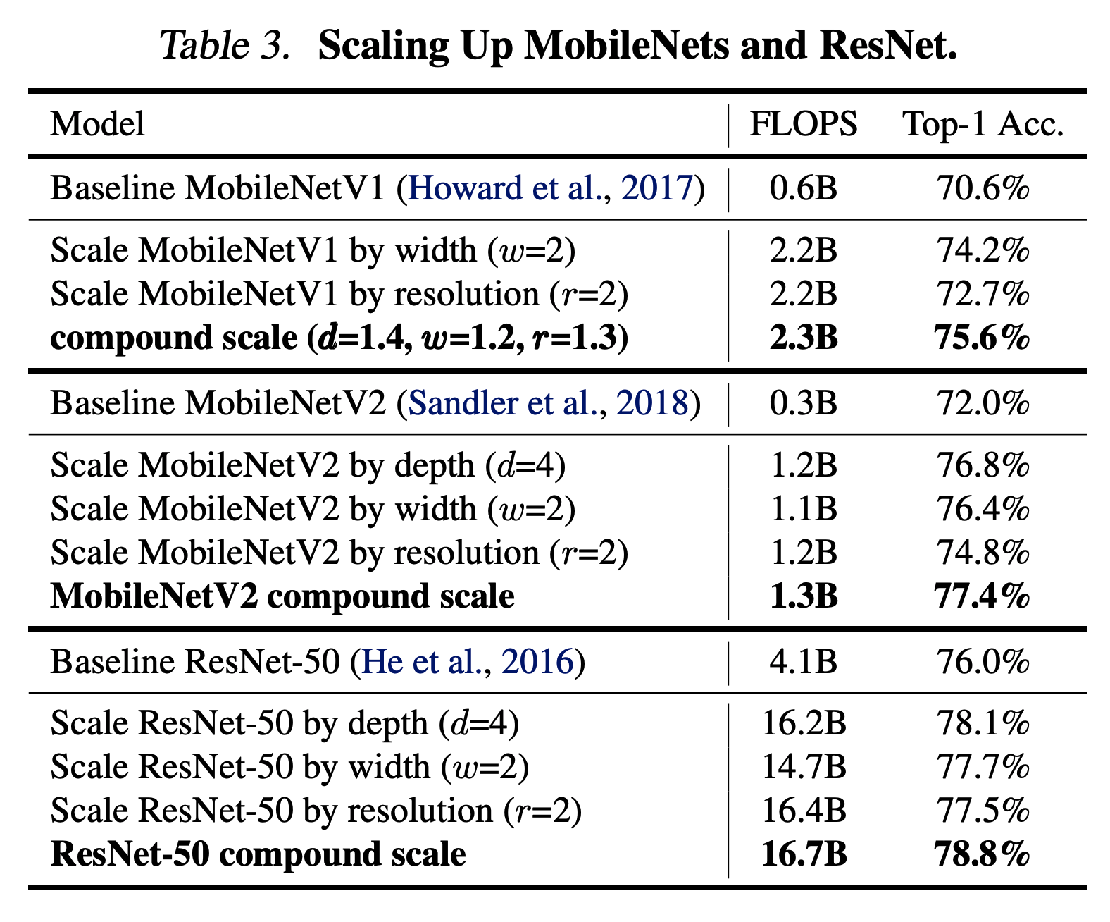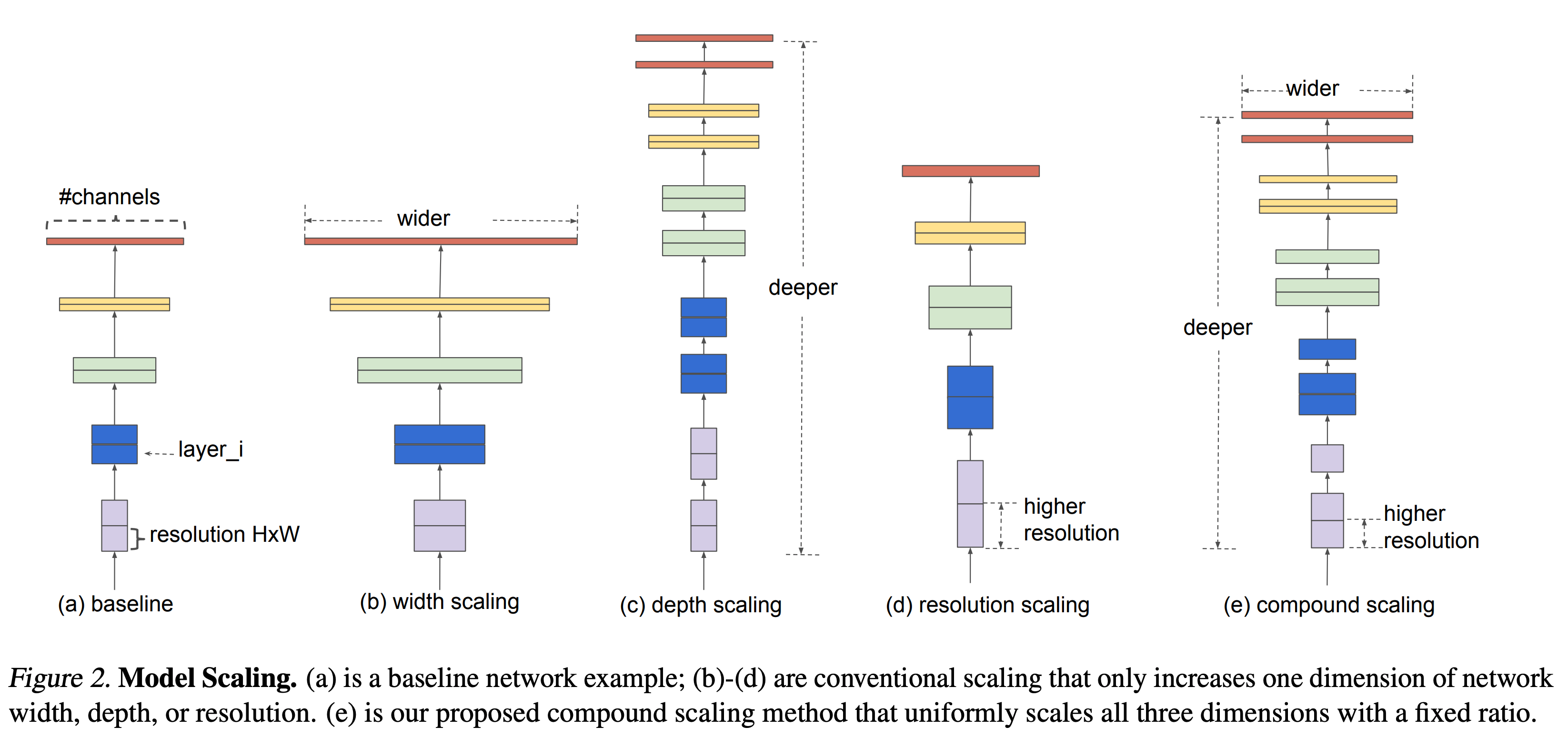 이전 작업에서는 깊이, 너비, 이미지 크기 등 세 가지 차원 중 하나만 확장하는 것이 일반적이다.