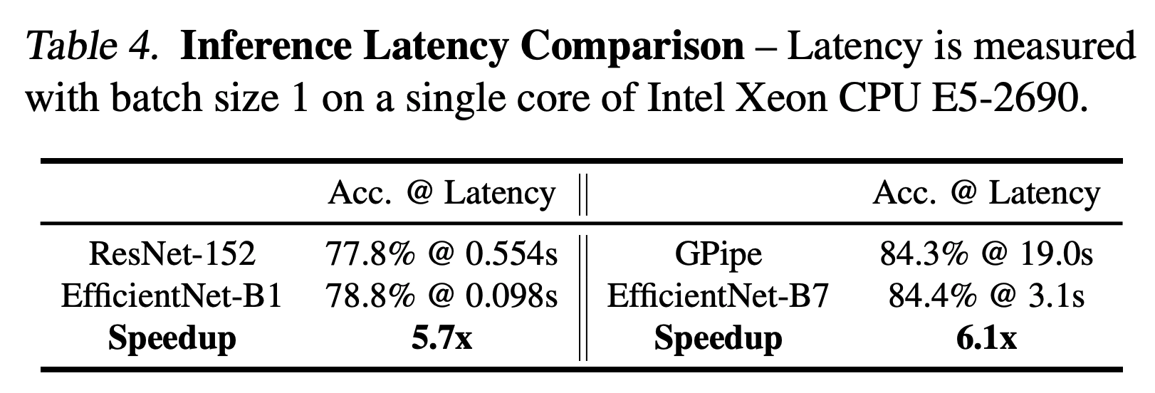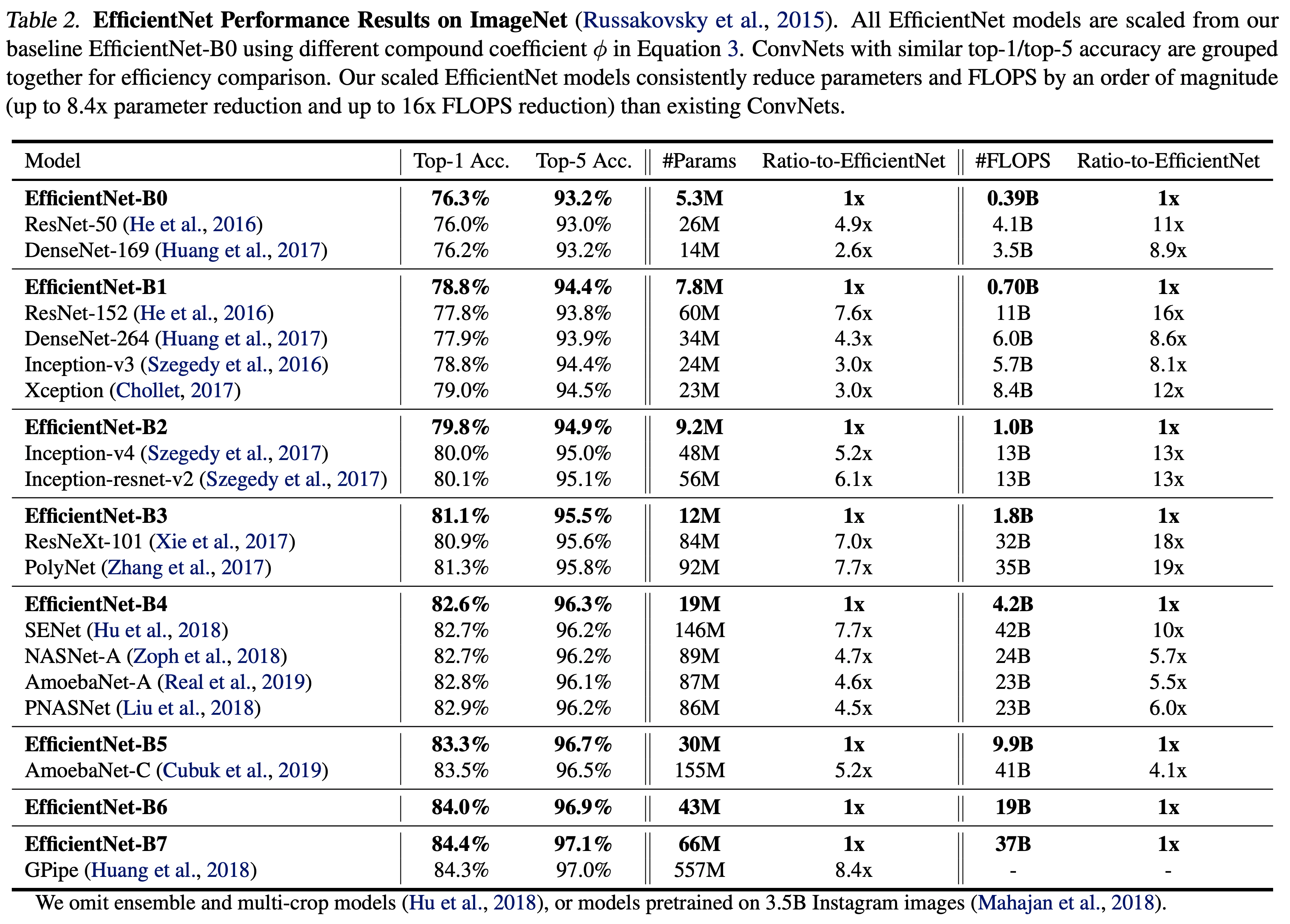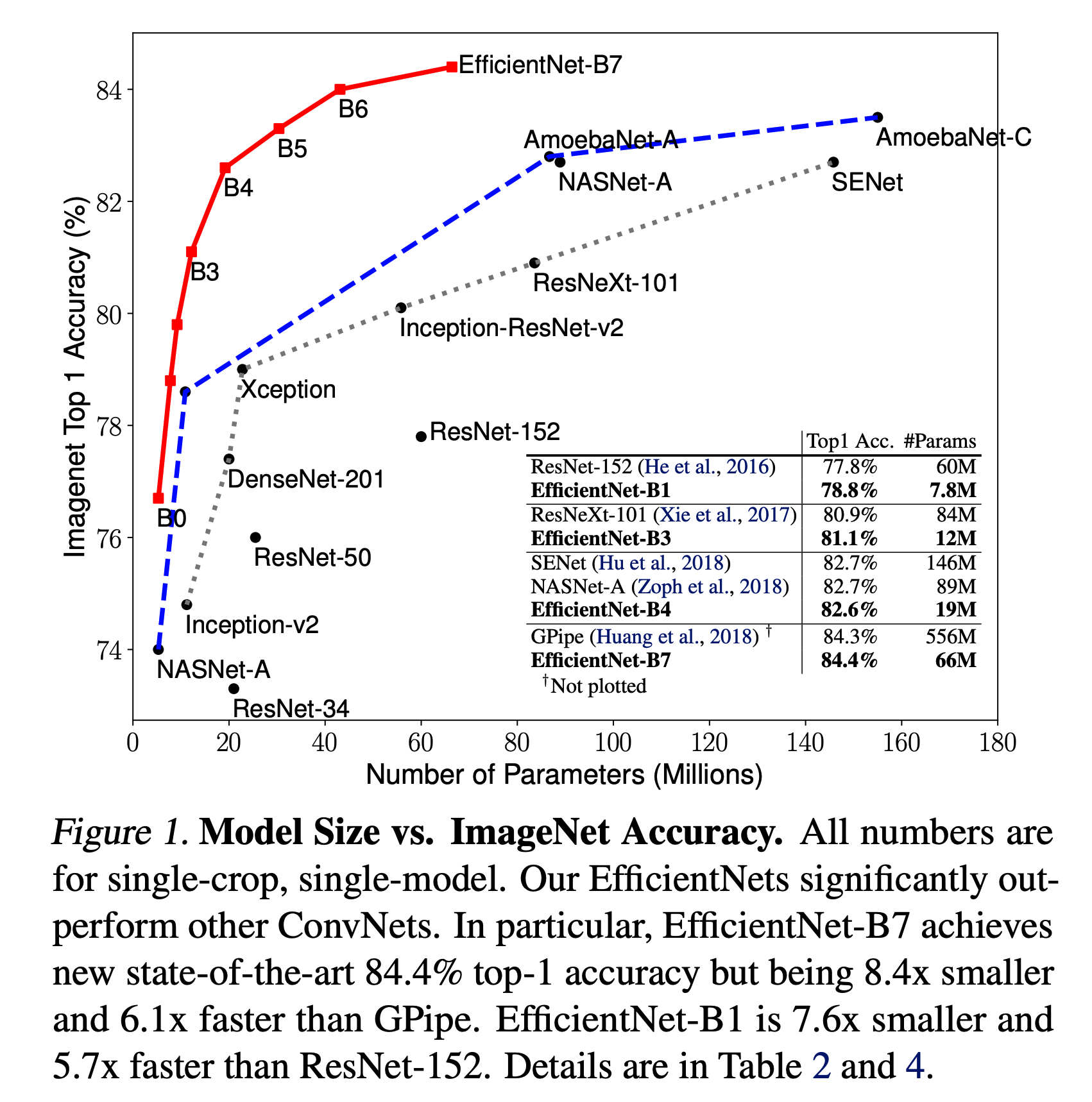 특히, EfficientNet-B7은 ImageNet에서 최첨단 84.3%의 상위 1위 정확도를 달성하는 동시에 최고의 기존 ConvNet보다 추론 속도가 8.4배 작고 6.1배 빠르다.