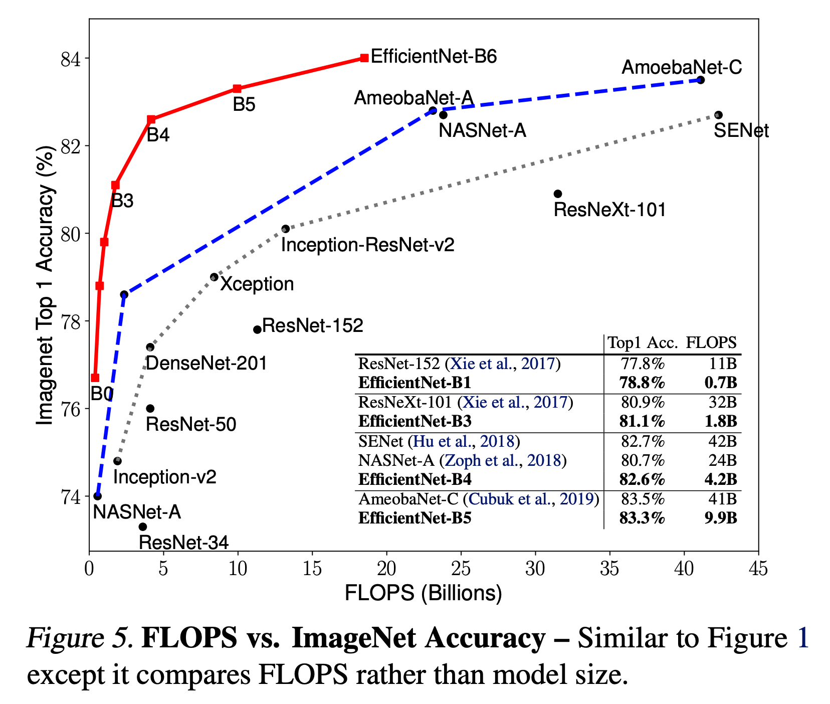 - 그림.5는 그림.1 과 거의 같으나 model size 말고 FLOPS를 기준으로 그린 그림이다.